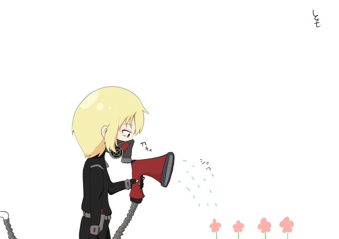 みるくるみさん(@mirukurumi0528 )とこのアンリ・スナガさん描かせて頂きました! 趣味が園芸っていうのを見て最初に浮かんだ構図です 攻撃するかと思いきやただの水やり お納めください #らまそい #ともつる