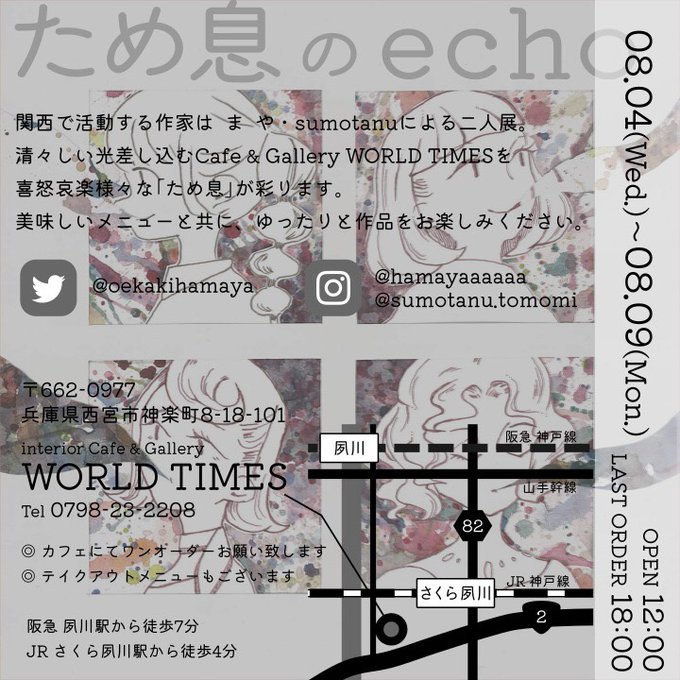 続いて明後日から、5月に行う予定が延期となっていたsumotanuとの2人展“ため息のecho”を夙川のカフェギャラリーWORLD TIMESさん(@WORLDTIMES8)にて開催します。