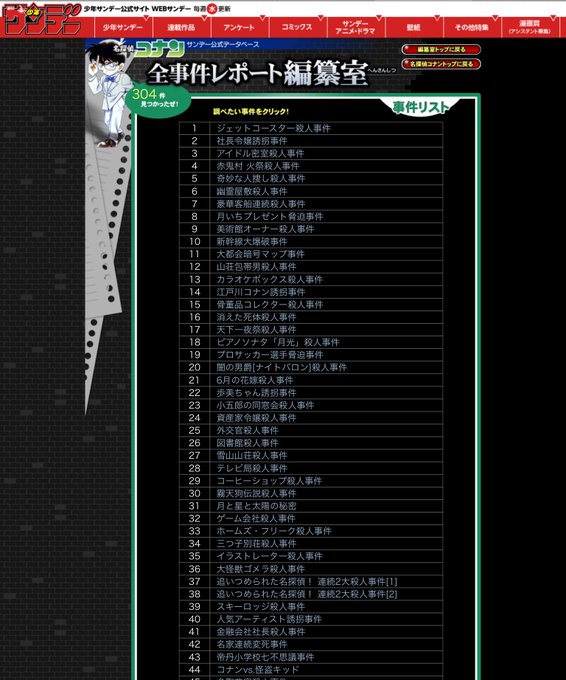 サンデー公式の名探偵コナン全事件レポート編纂室が凄すぎる 304件てまじで1日1事件のノリじゃん… https://t.co/zqXlT6VZ8t