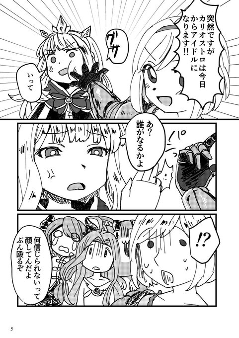 C91に既刊のグラブル本も持っていきます。カリオストロとジータがアイドルになってルピを稼ぐギャグ漫画です!よろしくお願いします!(へっぴりまる。1日目東1-K02a)