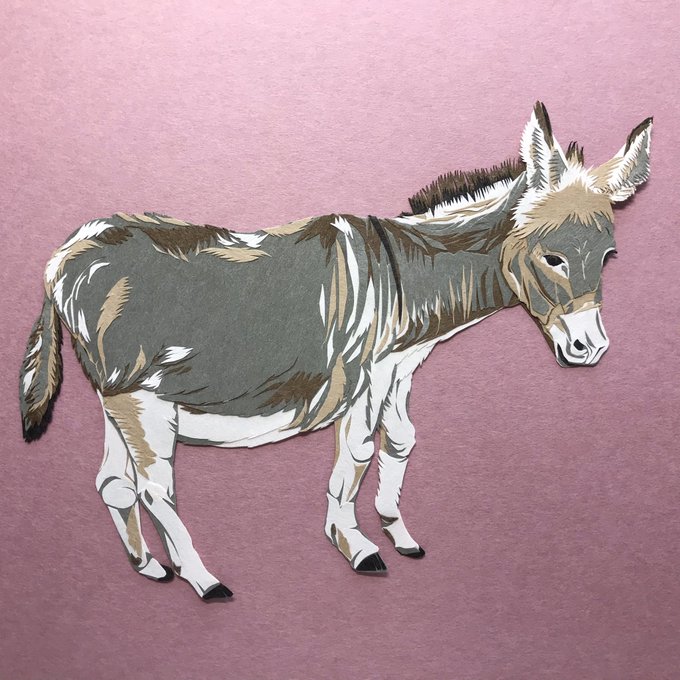 切り絵(貼り絵)で作ったロバ。 下描きなし、フリーハンドでハサミで切っています。 #切り絵 #貼り絵 #動物 #ロバ #フリーハンド