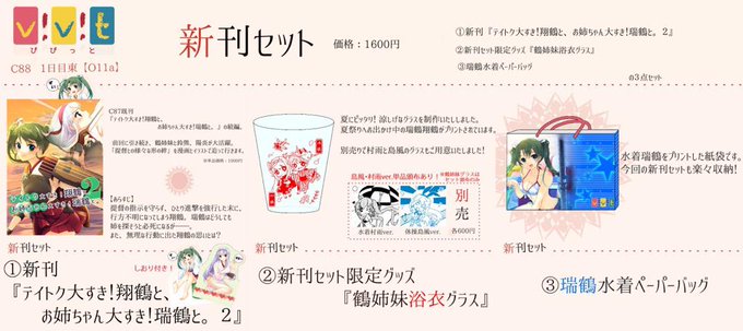 【夏コミ宣伝①】 今会の目玉はなんといっても会場限定新刊セット!水着瑞鶴がかわいらしいペーパーバッグに入れてお届け。新刊の他には、浴衣鶴姉妹のグラス。暑い夏はこのグラスで水分補給を!http://t.co/tHjydZir5W