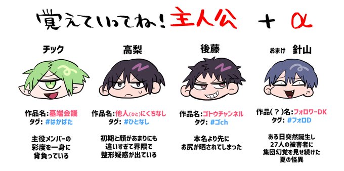 できた~‼️主人公3人表情メイキングです‼️並べると壮観(?) マシュマロありがとうございました🙇♀️✨ #はかばた #ひとなし #ゴch