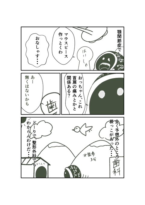 首こり、肩こり、背中の痛みは 顎に原因があるかもしれない話(2/2) 治ってないけど今の所 一番回復してる向きがある みんなさんも原因不明の肩こりが治らないときは顎を疑ってみるとイイかもね 歯科、口腔外科で顎関節症の確定診断がでれば保険でマウスピース作ってもらえるよ!