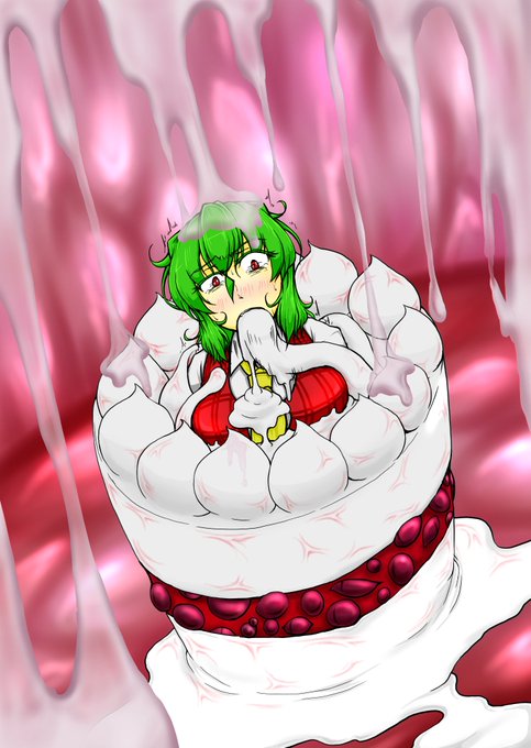 ケーキに擬態した軟体妖怪に捕まってホワイトクリスマスされる幽香さんのイラストです