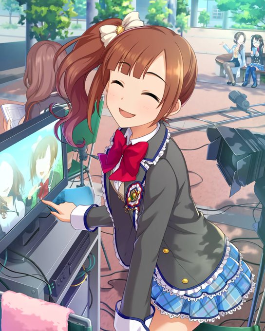 奥山沙織が写り込んでるカードは少ないけど、過去にはモバマスの聖靴学園イベにて響子ちゃんのカードに川島さんと一緒に写り込んでいました