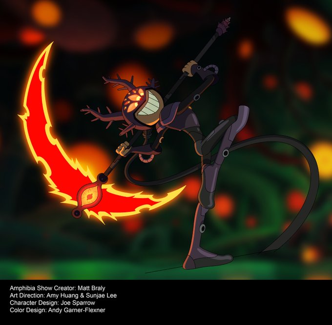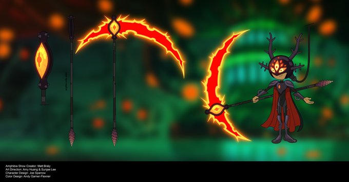 Darcy's scythe was SO MUCH FUN to figure out. We had a few variations, but ultimately this one was the best. #Amphibia #Colordesign