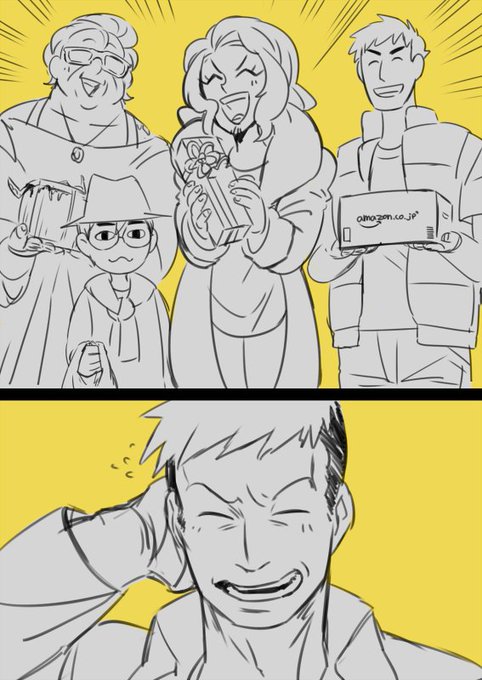 桐箱/コンビニ袋/綺麗な梱包/a●azon 誕生日には間に合いませんでしたが、どうしても照れながら喜ぶジャナル氏が描きたかったのです。