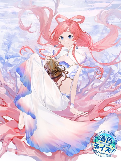 えいさんに珊麗ちゃんに珊瑚礁に座ってるヴィネット風イラストな提案リクエスト頂いたのでオッケー!!水着イベでできるじゃん!!で行きましたがモチーフお伝えしてお任せにしたのでどうでしたでしょうか!オマケのがそれっぽいかな