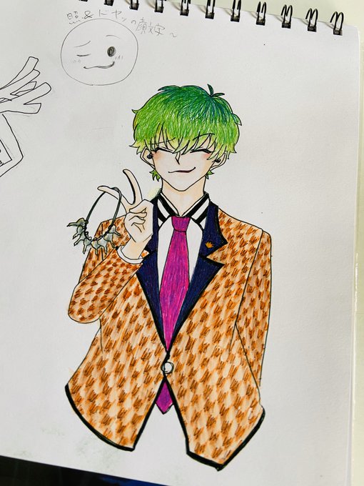 線画、上手く書けたのでアナログも塗りました。千鳥格子風の無駄に頑張ったわwカラーボールペン塗りが好き。