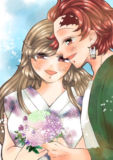#kmtの夢 ⚠️🚺姿、顔でています こいびとの日に💐をプレゼントする🎴 当日には間に合わなかったのですが🥺描きたかった