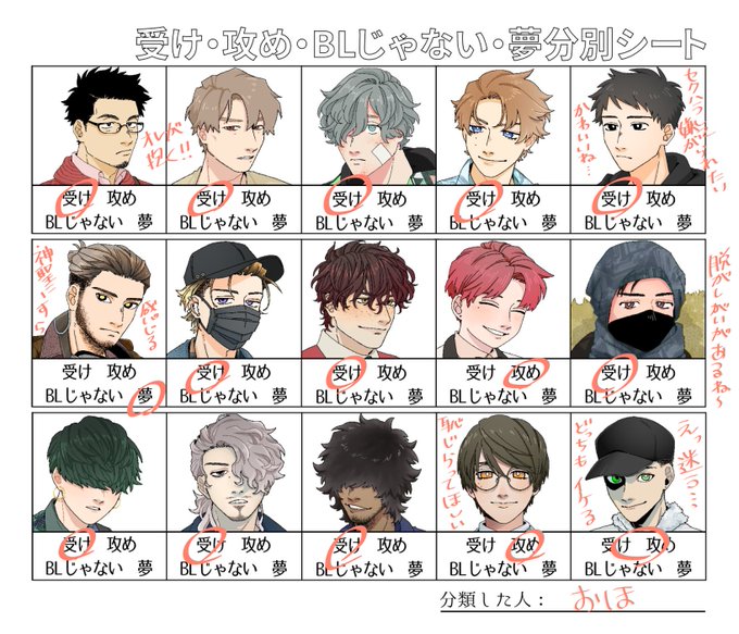 結構探索者がたまってたので、久しぶりの受け・攻め・じゃないシート作ってみた!