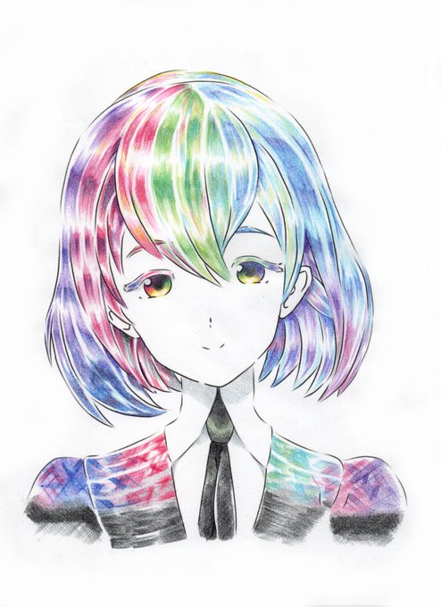 黒色鉛筆を使わずに古見さん。 今回はツヤを意識してみました 黒っぽく見える色の不思議 #色鉛筆 #古見さんはコミュ症です