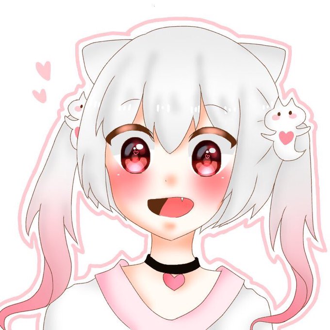 キャラを載せときます!!! ツインテール(長さは指定ないです!) 髪色⏩白からピンクのグラデ 赤目、クリオネのゴム ハートのチョーカー 角みたいなのは猫耳やクリオネの耳??どちらでも👍 このハートのステッカーは、貰った大切な絵を無断使用されたくないからです!
