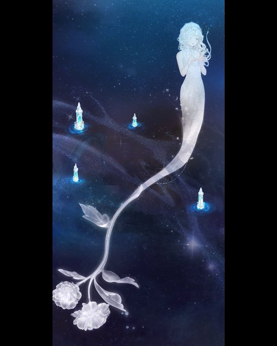 人魚系のアイテム持ってない方…(ᐡɞ̴̶̷ ɞ̴̶̷ᐡ)【白夜の茨】と白系のマーメイドドレスでほんのり人魚っぽくできます……🧜♀️見てくれる人の想像力にかなり助けてもらう感じですけど二枚目の幽霊っぽくもできます…ぜひ…🐥