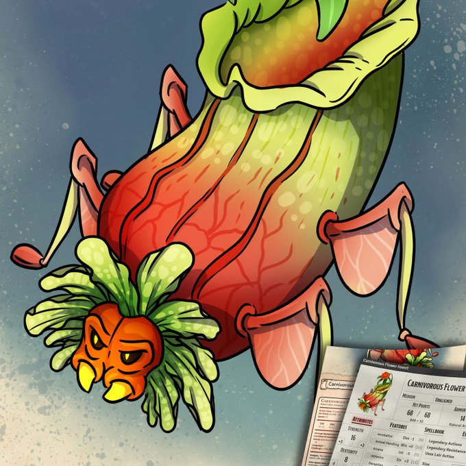 Another free loot creature I've adapted to become a DnD monster and Foundry VTT actor! Carnivorous Flower Insect 🍇🌷
