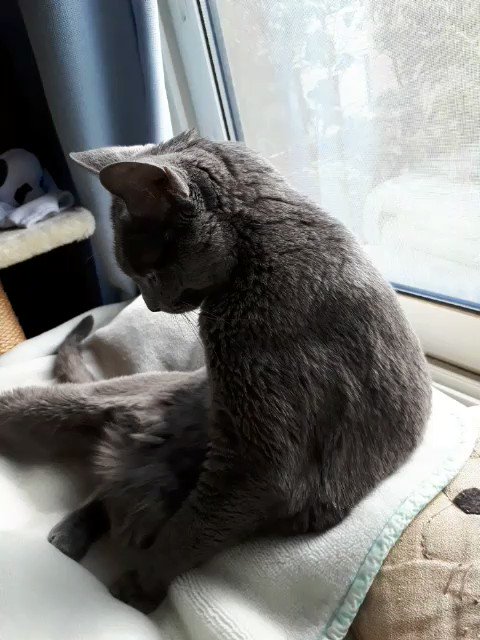 なんか!ののちゃんの背筋がピーンとしてる!😆😆💕 なんか!可愛い~😆⤴💓 ののちゃん、猫背じゃないの?😅😆 お腹舐めてる時、横から見たら、こうなってるのね😆😆💕 なんか可愛い~😆⤴💓 副反応、2日目、まだ37.5度あるよ~😱 でも、それ以外に具合悪いとこないから、少しずつ良くなるかな🎵