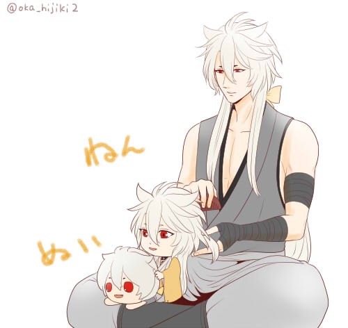 #一番目にリプきたキャラを幼児化し二番目にリプきたキャラにだっこさせる 我が鍛えられしフォロワー様のリプは ①小狐丸 ②歌仙さん だったんですね~w 遊び倒して寝ちゃった的な☆ ※コメント欄に続く