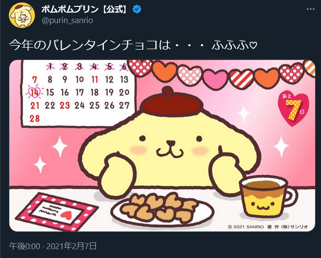 バレンタインの時期になるとそわそわするポムポムプリンかわいいわ