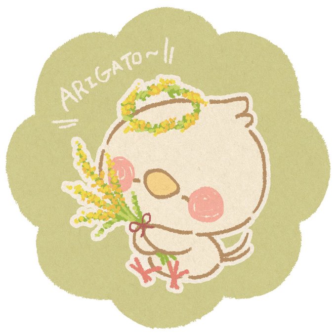 今日は、ミモザの日だそうです。男の子が、女の子に、ありがとうする日です。だから、お友達、みんなありがとう。男の子もです。 #今日は何の日 #ミモザの日 #イラスト #illustration #オカメインコ #小鳥