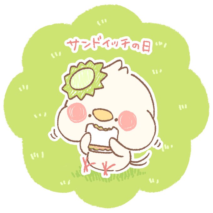 今日は、サンドイッチの日だそうです。きっぺえ、お昼は、レタスと、ハムと、チーズのサンドイッチです。 #今日は何の日 #サンドイッチの日 #イラスト #illustration #オカメインコ #小鳥