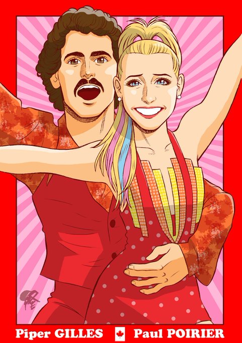似顔絵ツイート。パイパーちゃんとポワリエさん。3位おめでとうございます!!とっても素敵なプログラム、大好きです!!どうして地上波で放送しないのかな? Piper GILLES選手/Paul POIRIER選手。#SCI16 #figureskate