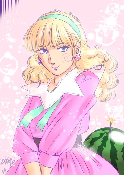 おはようございマリス 早起きしたんで謎の美女マドンナちゃん描きました 9月だけどスイカお食べになります?
