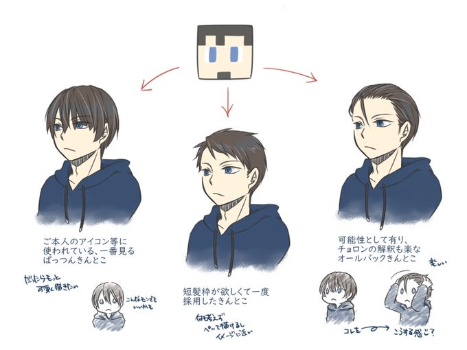 🎤の髪型を考えてみるの会。 服と違って気分で変えるのは流石にマズい気がするけど気分で描きたい気もする。