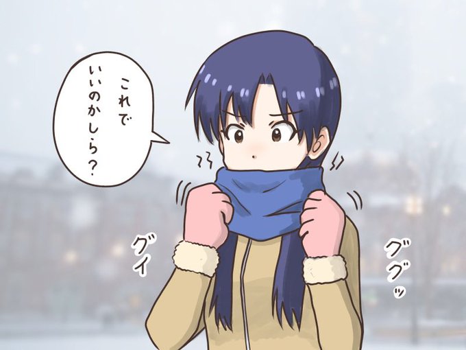ネックウォーマーから上手く髪が抜けなくてしっくりこない千早 #イチニチハヤ #如月千早、#ネックウォーマー