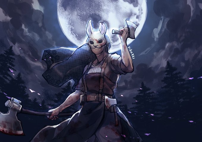 ツイッチで描いたハントレスちゃん 個人的に彼女のメメントが一番怖いです。顔面・・・。 #DBD #DeadbyDaylight