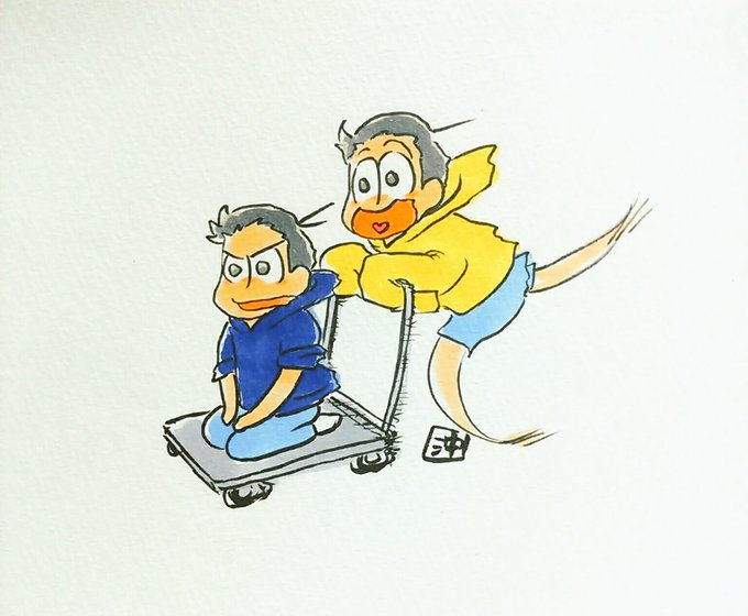 お題【水陸松 映画館】 「悪いねカラ松…1人じゃ入りにくいんだよね」 「映画と一体になるとは …なかなかミラクルな体験だったぜぇ」 #ペア松版深夜の真剣お絵描き60分一本勝負