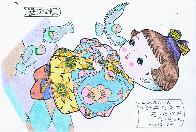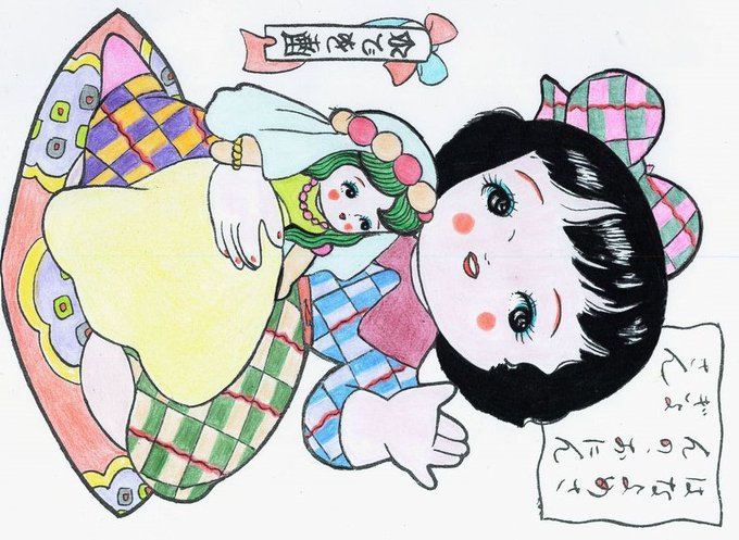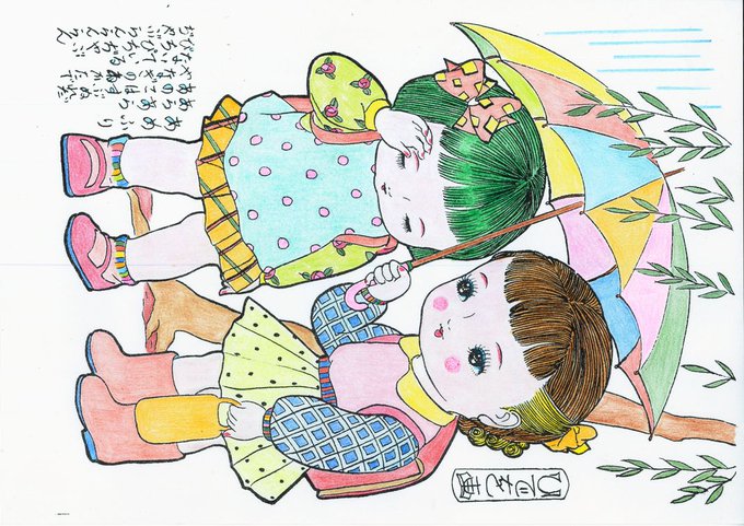 ぬり絵の国動画用118枚目完成。とおりゃんせで遊んだ記憶はないですが はないちもんめはあります(女子に無視されたりイジメられたりした。。。