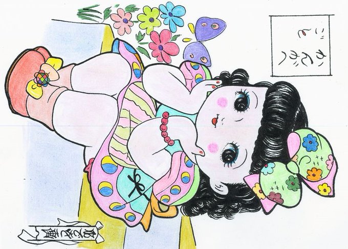ぬり絵の国動画用122枚目完成。女児のおかっぱ刈り上げって家でやったのかな?妹いなかったんで