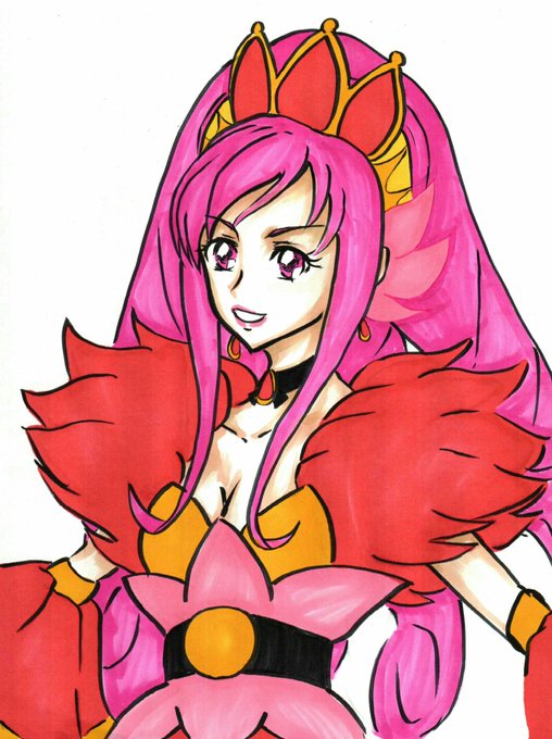 #プリキュア版深夜の真剣お絵描き60分一本勝負 分かりにくいけどキュアエース。スカーレット衣装の。 変身バンクのせいでキュアエースは「炎のプリキュア」というイメージがある。