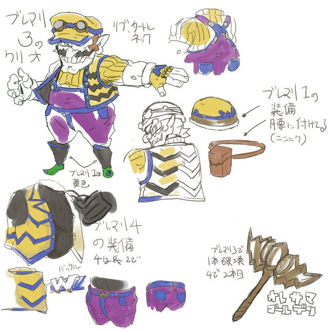 ブレイブマリオ装備衣装 設定画 デイジー姫 あとワリオの長袖等修正