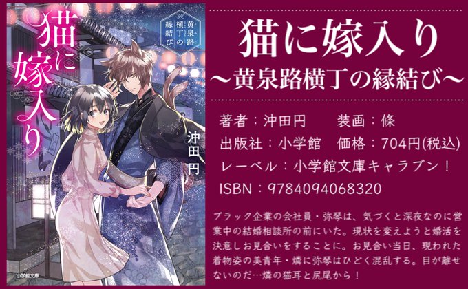 @ms_ishino 自薦失礼いたします🙏 「猫に嫁入り」①②巻(小学館文庫キャラブン!) あやかしの出てくるほっこり系ライト文芸です。