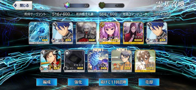2回目の10連、途中で金キャスター来たァーって……4人目w(宝具上がるからヨシ!)