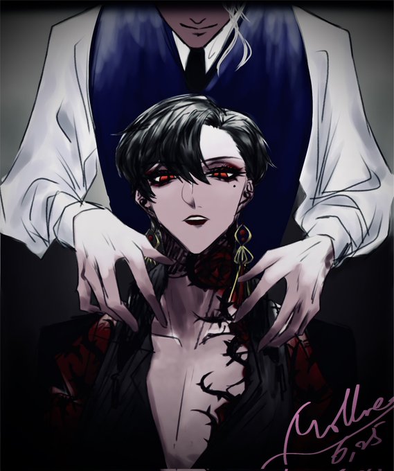 @karasu_ruku よかったらうちのボス🥀をお願いします…っ((ソッ 首あたりの薔薇のタトゥーの茨の向きなどは適当でいいです!!!✨