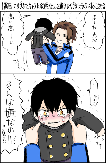 ①三輪きゅんを幼児化させ②迅さんにだっこしてもらいました!リプくれた方ありがとうございましたたたん! #一番目にリプきたキャラを幼児化し二番目にリプきたキャラにだっこさせる