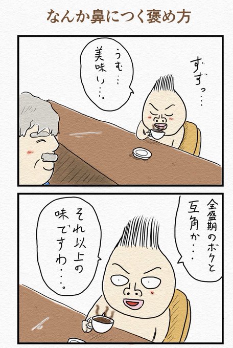2コマ漫画『なんか鼻につく褒め方』
