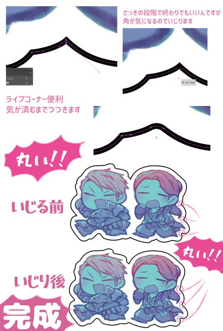 これくらい単純だと楽だけど 画像トレース→中身消す→適当にオフセット→あとは単純化しつつ気になるところを直す(これだと左腕の下の鋭利なとことか)