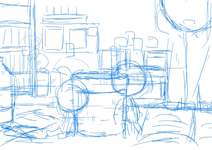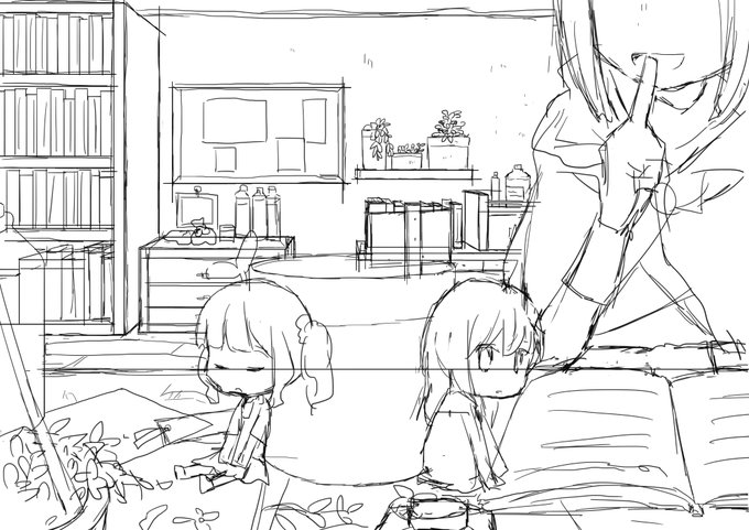 #このタグを見た人はラフ画とその完成絵を見せる この前のエア新刊の表紙のやつです。自分にしては背景を頑張った!