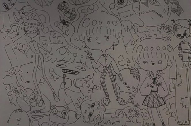 アナログがポルル。デジタルがだいぶ前に描いた宵のイメージ。お部屋は都のお部屋。黒いスライムは都の元の姿的な。このお部屋から世界観できてきました。