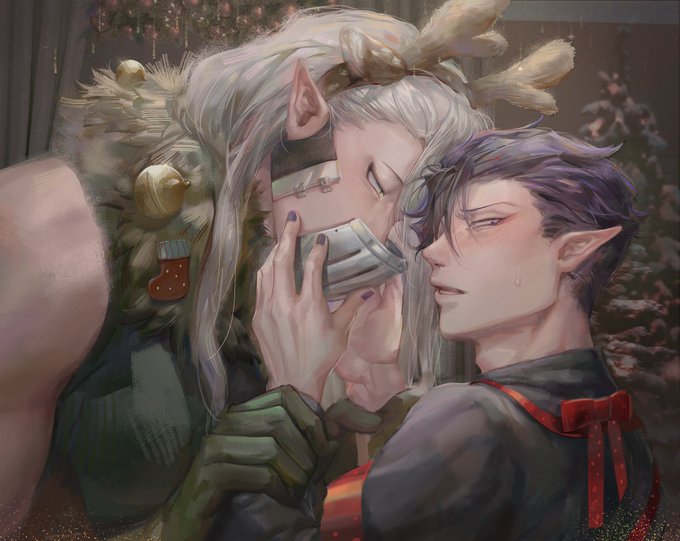 可恶圣诞节都过了,我才画完😫