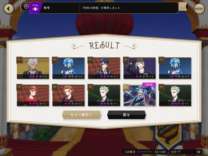 数日前のカリムくんピックアップの時に20連したらこれだったので、今運がガバガバなんだと思う(リリアもシルバーも来ません)