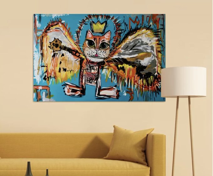 Olga Koval - Fallen Angel Red Cat inspired by Basquiat (2022) Painting, 81x122x2 cm https://t.co/tPmFhw3IN7