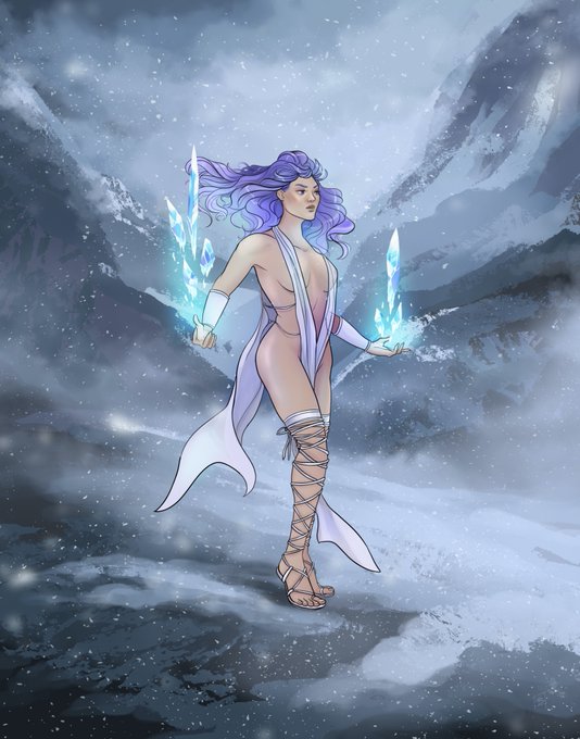 ❄️Commissioned by @leilaclaire for @thechriskaye's gorgeous DnD character Enora Enth, an Aasimar tempest cleric/sorceress.❄️