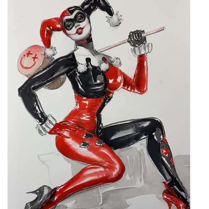 part 2 #wip of #harleyquinn. This will be one of many works of art available on our summer auction beginning next wednesday.. in conjunction with @Comic_Con which we will also be participating in...our first virtual comic con! @GiaGenevieve #dccomics #joker
