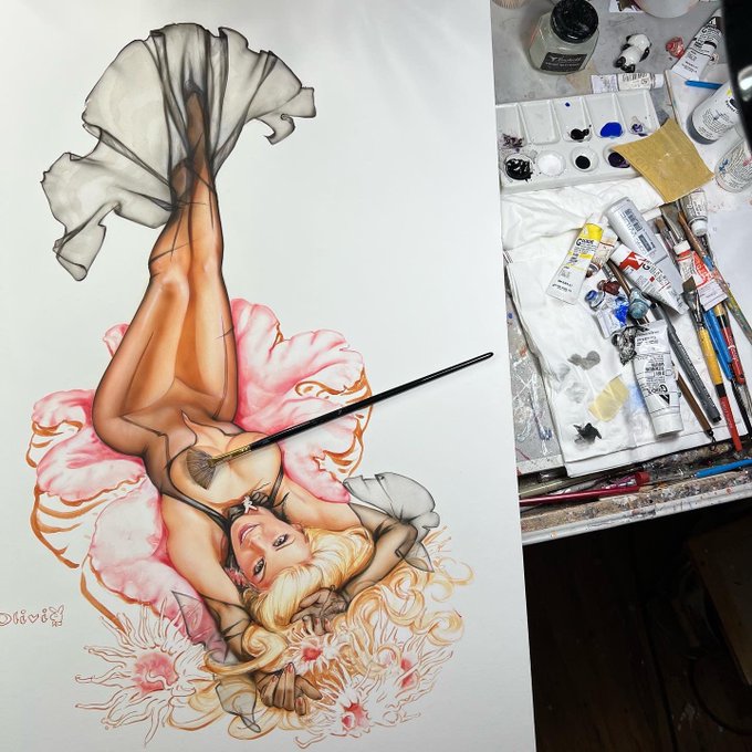 https://t.co/deT9tuDdO4 questions?info@eolivia.com #AngelaLindvall #CrystalHefner #PamAnderson #PlayboyIllustration #OliviaPinupArt