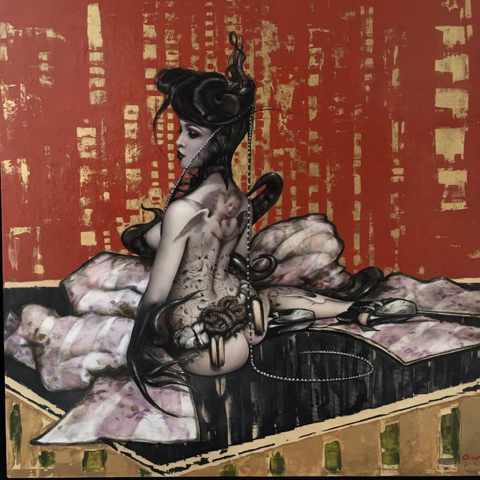 For #playboy #pinup page, circa 08. Print of this is available at https://t.co/TKEIz9EUE4 #heatherKozar #angel #devil #lingerie